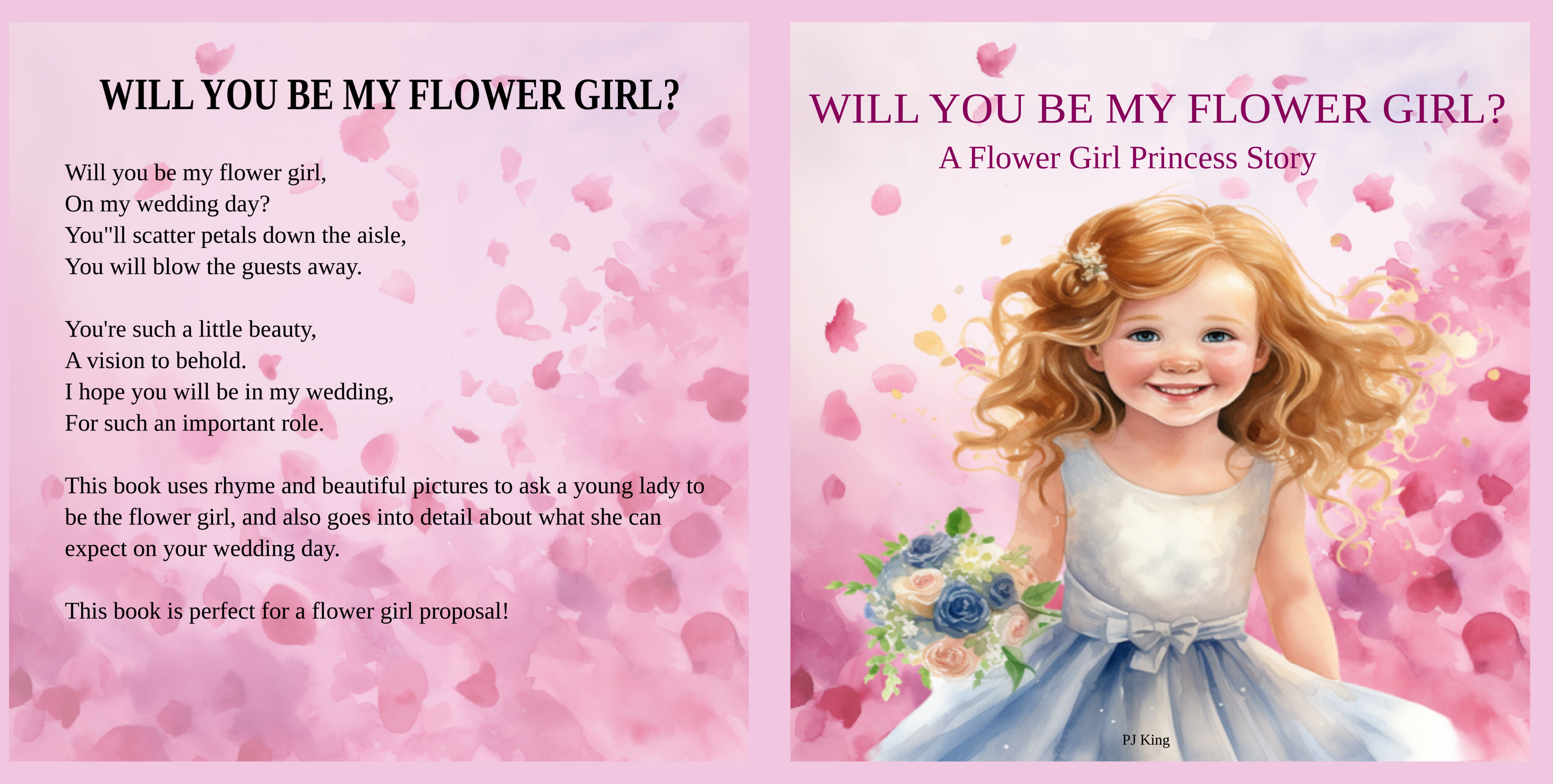 Her second book is titled Will You Be My Flower Girl? A Flower Girl Princess Story. This isn’t just a book; it’s a cherished keepsake, a timeless treasure that will forever hold the memory of the magical moment when she said ‘yes’ to being your flower girl. It is a sweet book used to ask a little one to be your flower girl. It also goes through the process of what a flower girl does. It is a must have for every flower girl proposal!